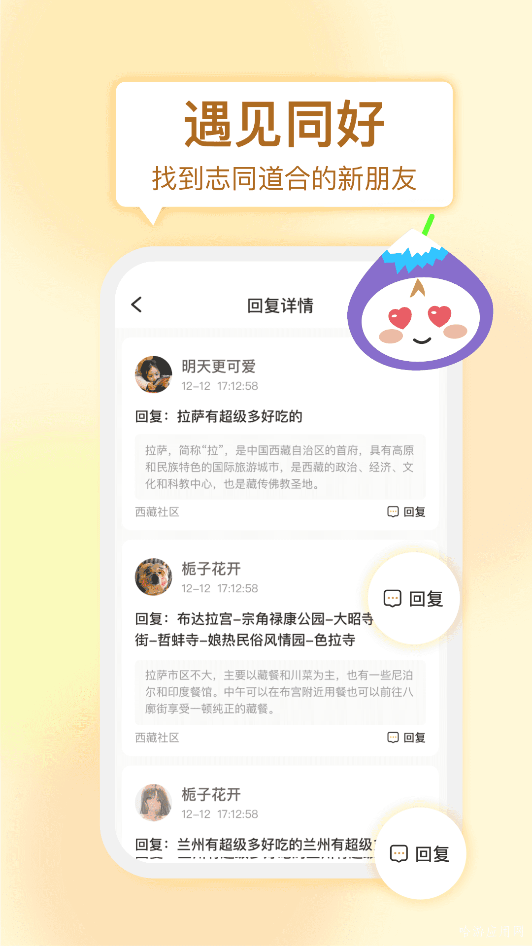耶耶耶耶耶app:分享一些有趣的事情在上面结交朋友吧,随时都可以在线互动起来,各种帖子信息免费推荐给你,和喜欢的人一起互动也好,还是聊天脱单都可以前来这里,你想要做的事情上面都可以帮你去找到,新鲜事物分享更加有趣。