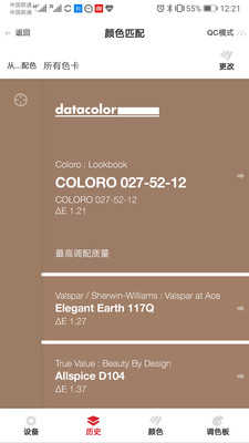 配色方案建议可得到油漆品牌颜色的名称,色号和其他包括RGB,CMYK, Hex, LRV, LcH, CIELab, Delta E