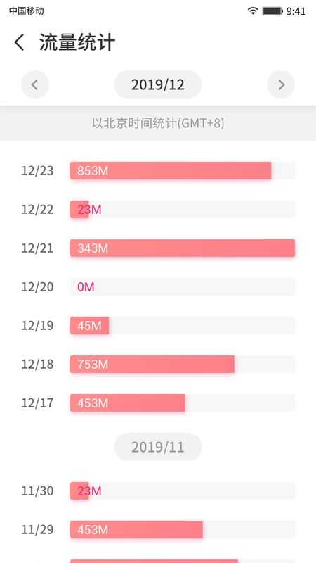 2、流量统计,统计流量的使用情况时能让用户更好的进行每天流量花费的总量统计。