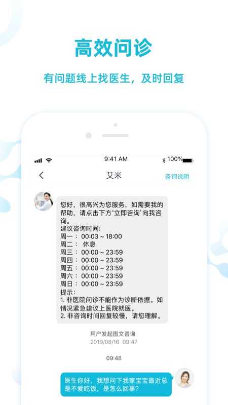 2、高效沟通渠道,用户遇到问题时可随时联系医生,通过及时的交流找到解决办法,为健康保驾护航。