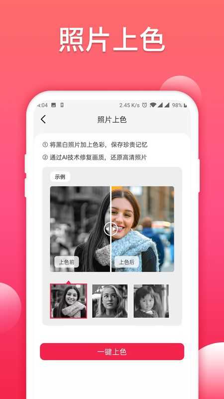 3、照片上色,黑白照片也可以一键上色,完全可以还原照片最真实的样子。
