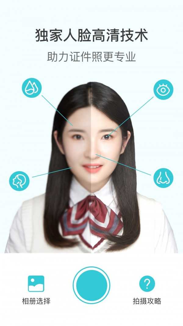 3.严格的拍摄环境检测,对人脸姿态、眼睛视线、双眼水平、服装突出、肩膀水平、光照充足、光线均匀进行检测,确保用户拍摄出合格的证件照。