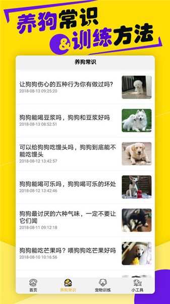 3、养狗资讯:为您推送更多关于您爱犬的小知识,助您成为你一名合格的铲屎官;