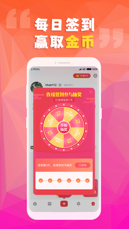 3、轻松赚钱,通过签到和素材分享到朋友圈,就可以赚钱,每天领取大额红包,随时随地赚钱。