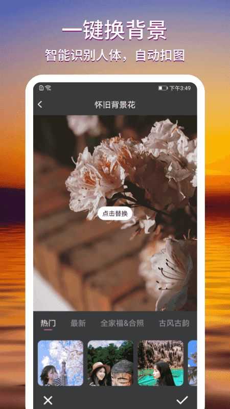 3、能够自动识别上传照片中的人像,可以随时进行背景更换,让照片更加生动和具有灵性。