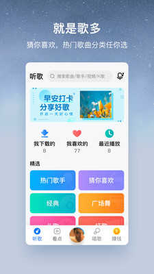 经典老歌、广场舞、红歌、民歌、戏曲、轻 音乐……为你定制,还能听歌识曲
