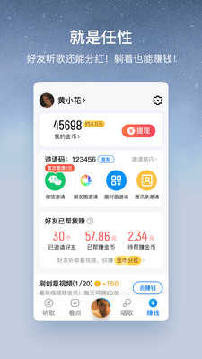 该应用主要针对中老年人,界面简单易操作,字体够大够清晰,同时提供金币福利,大曲库免费听。