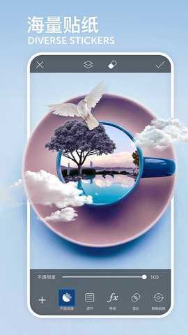 1. 支持透明度调节的图层操作,轻松实现两张照片叠加或双重曝光的效果。