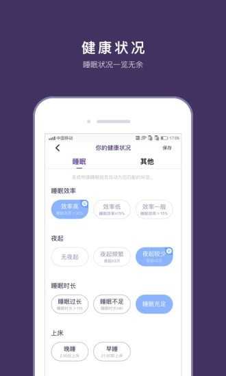 4、可让用户对自己的睡眠更加的了解,可实时显示睡觉的时长,入睡的时间等数据;