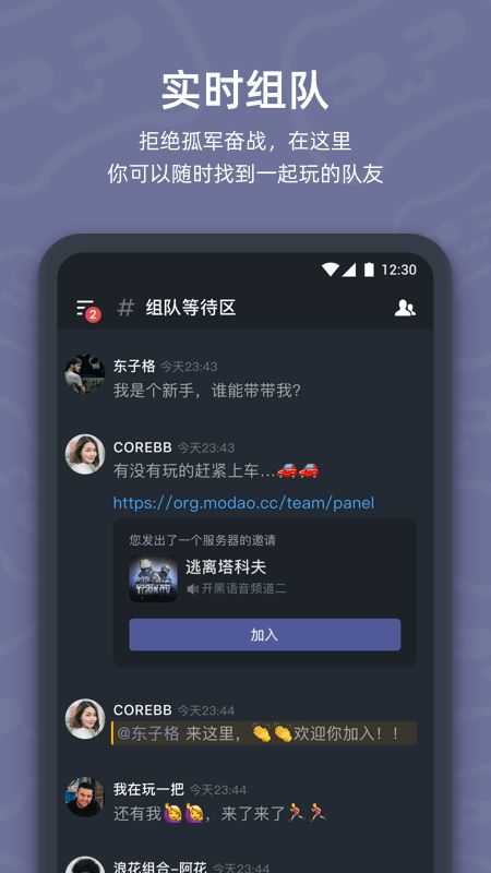 3、实时进行游戏组队,在线发布组队信息,然后在组队等待区进行参与组队,实时解决组队玩游戏。