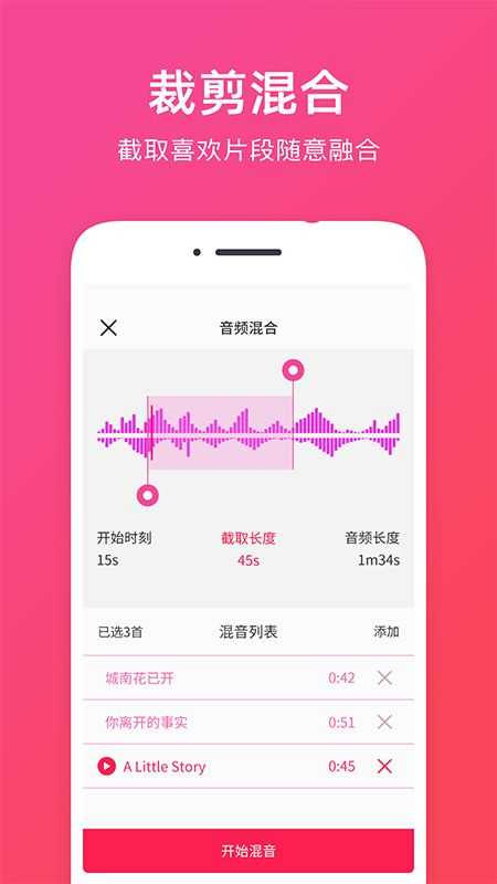 3、音频混合,对于不同的音频提供了专业的混合和拼接的功能,帮助用户轻松的解决在制作过程中的问题。