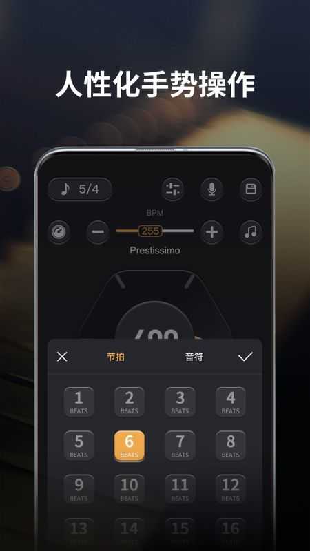 专业节拍器这是一个专门为音乐爱好者打造的音乐节拍调整服务软件,该软件能够让用户轻松进行音乐节奏和动力的掌握,通过非常精准的节拍管理方式,能够让你从此爱上音乐,轻松掌握古筝、钢琴以及吉他等乐器的使用方式。