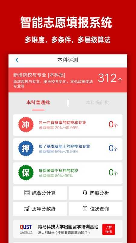 3、综合计算,详细的利用计算机技术,帮助用户分析自己分数符合的院校。