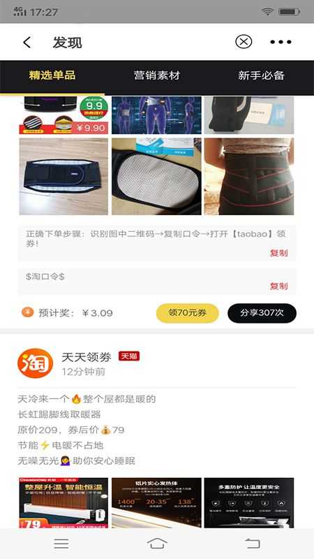 2、享有返现,可以与朋友分享购物,分享即可获取到内部的佣金折扣。
