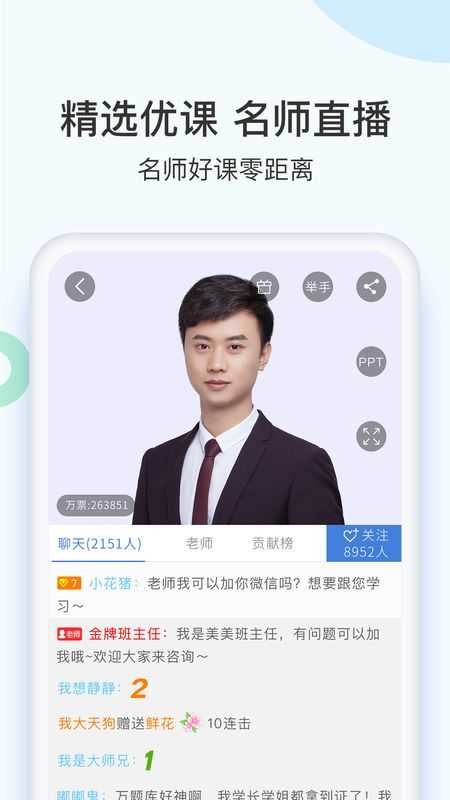 3、名师课堂,还带有着许多的名师直播课,开放式的互动讲堂,让你不需要花费任何一分钱学习看名师。