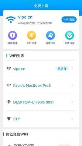 2、优质WiFi连不停,精选信号佳、网速快精品WiFi,一键连接,上网畅通无阻。