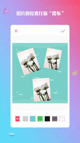 收录了各种流行的背景,还可以在图片里面添加你喜欢的各种贴纸。