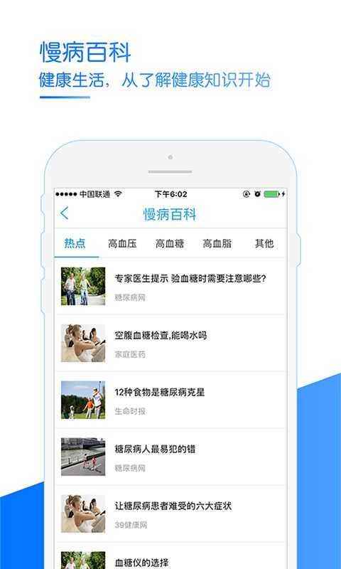 6.慢病百科:三高类慢病百科, 供个人用户学习了解更多更专业的健康知识。