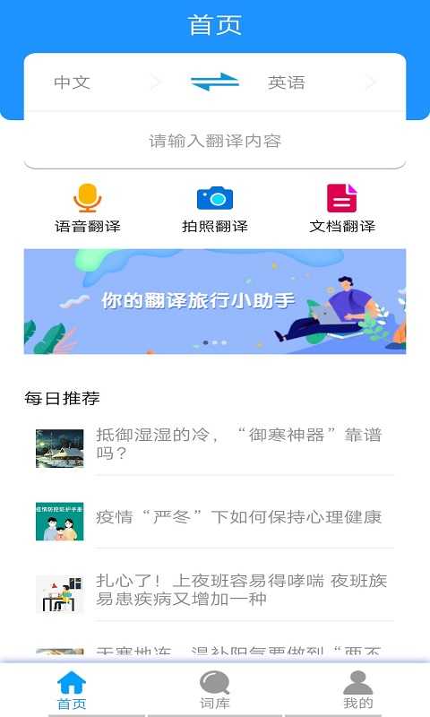 用户通过讲话、拍照、输入文本即可完成包括中文翻译英文、中泰翻译、