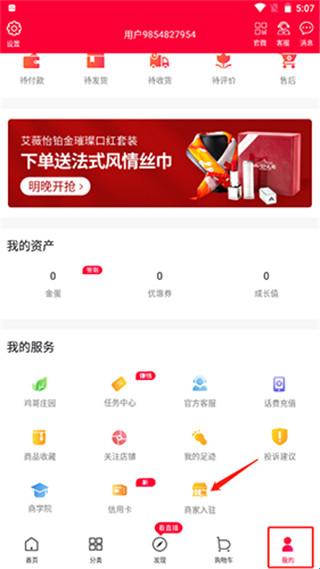 1、在我的栏目中点击商家入驻按钮