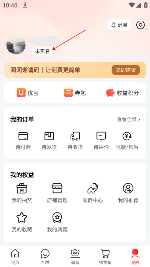 1、首先注册登录进入闻闻App,进入【我的】界面,如果账号未实名则需要先实名认证。