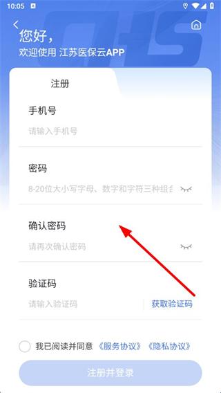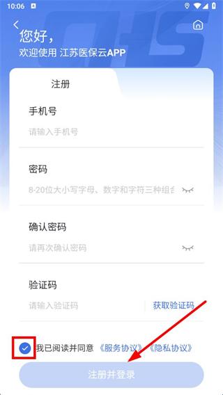 4、勾选我已阅读并同意服务协议、隐私协议,点击注册并登录按钮,即可完成注册操作。