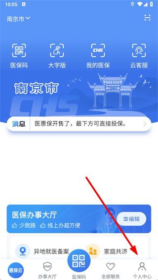 1、在江苏医保云app医保云页面点击个人中心选项,进入登录页面。