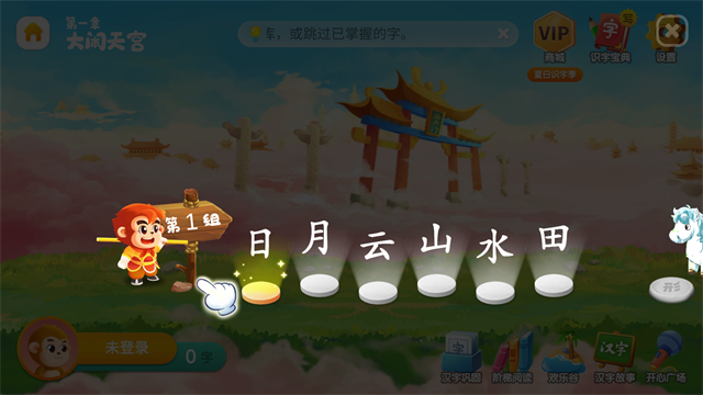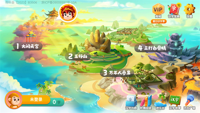 3、以西游记为故事背景、15大场景、120多个识字游戏、1200个识字动画;