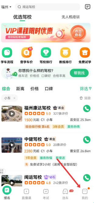 1、打开驾校一点通APP,点击底部导航栏最右侧的我的,进入个人中心页面。
