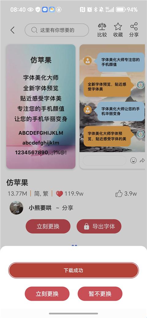 5、安装完成后,点击“立即更换”按钮,即可将刚刚下载的字体应用到手机中。