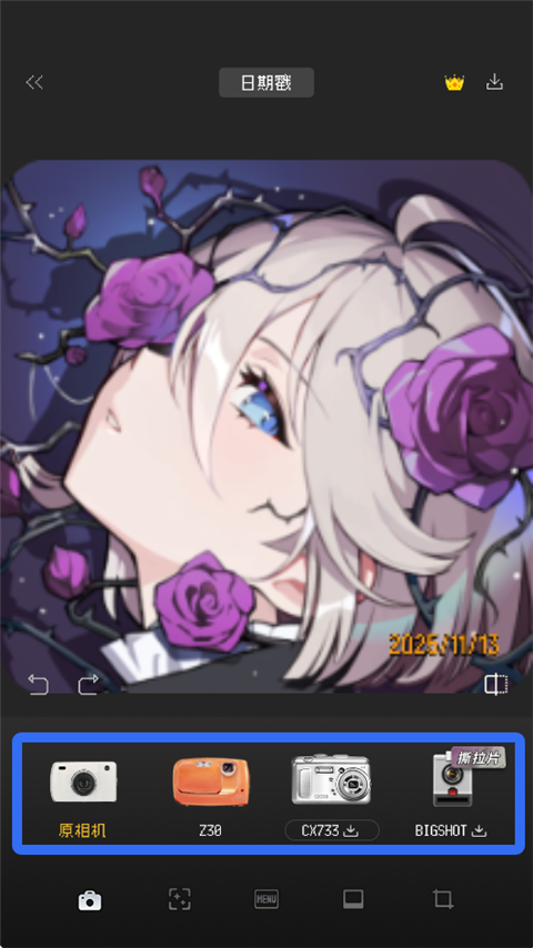1、经典时间戳还原年代感,还可以选择不同的日期戳样式、自定义日期。