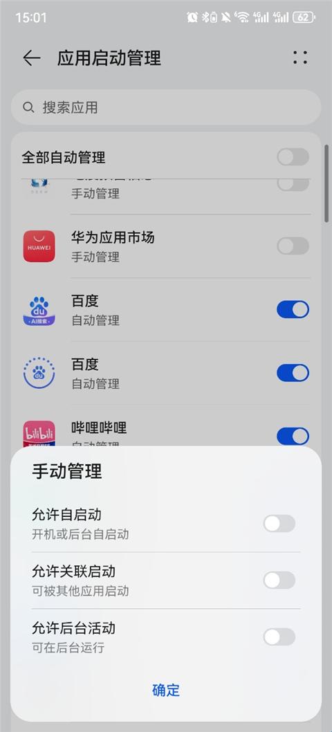 3、选择应用启动管理,选择中国地震预警App打开”允许自动“和“允许后台活动“这两个选项即可试试接收预警。