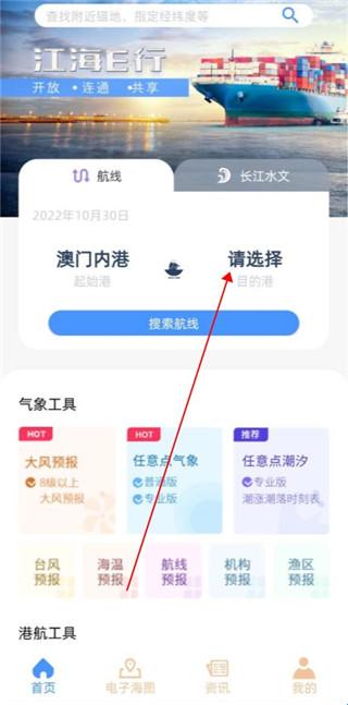 3、然后选择你的起始港