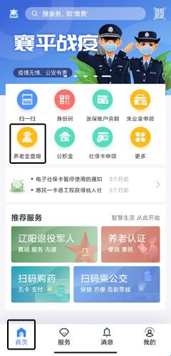 1、用户在首页中点击养老金查询按钮