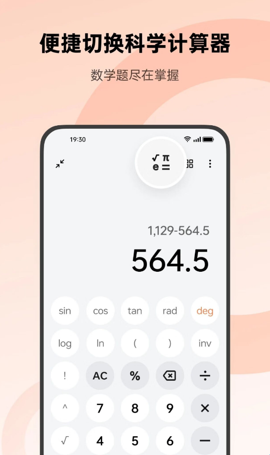 5.三角函数科学计算,支持角度.弧度计算。