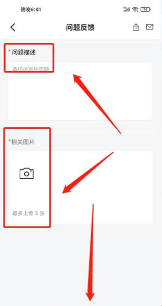 4、点击提交:进入问题反馈界面,输入问题描述、上传相关图片,点击【提交】。