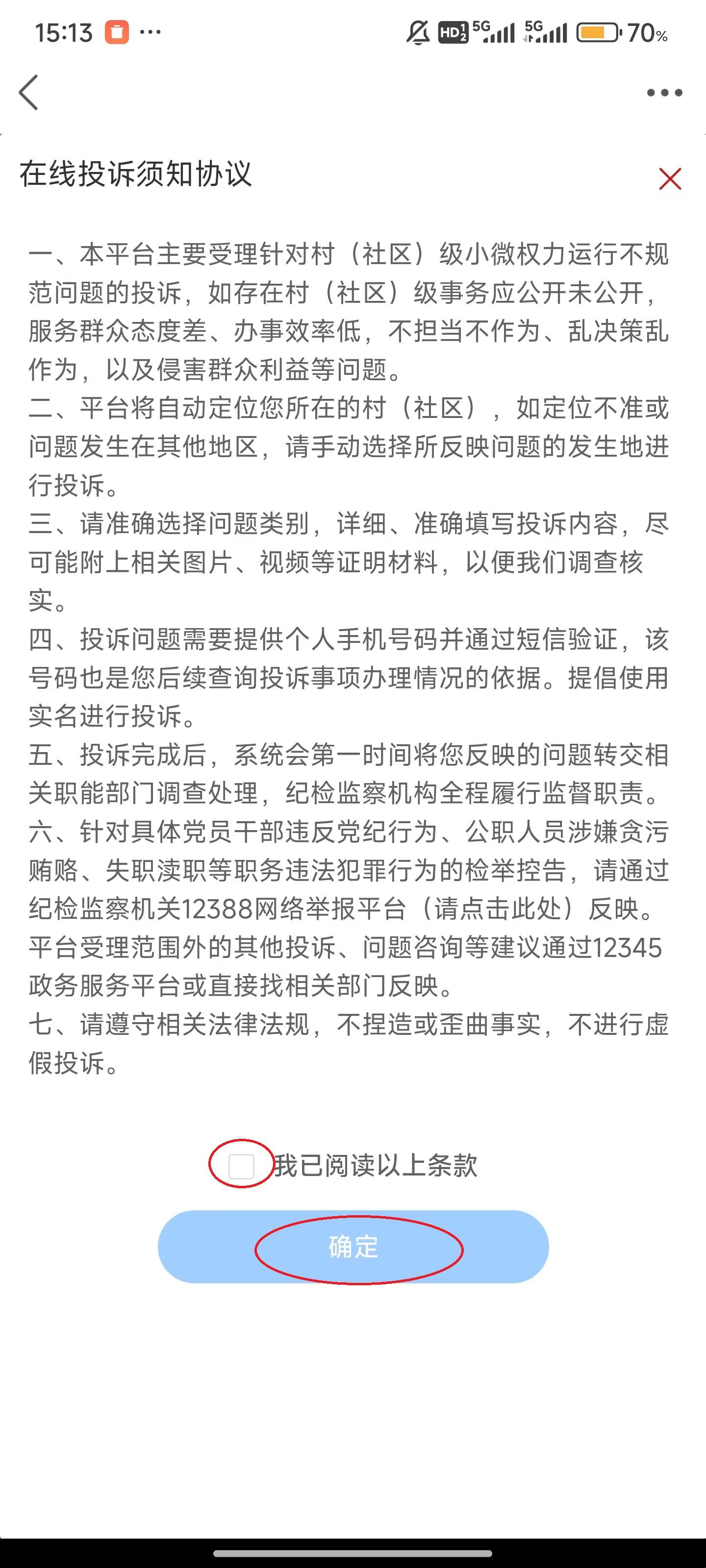 5、点击“我已阅读...”,随后点击屏幕下方的“确定”。