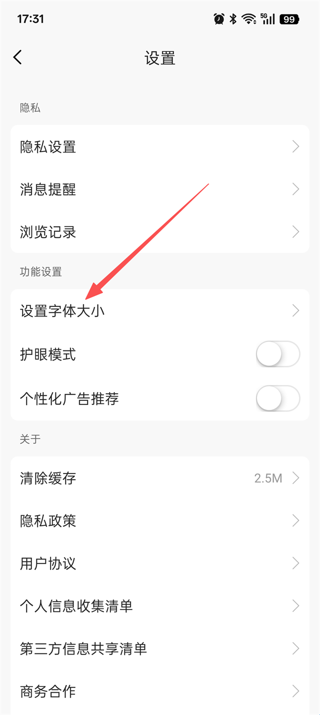 3、然后点击设置字体大小