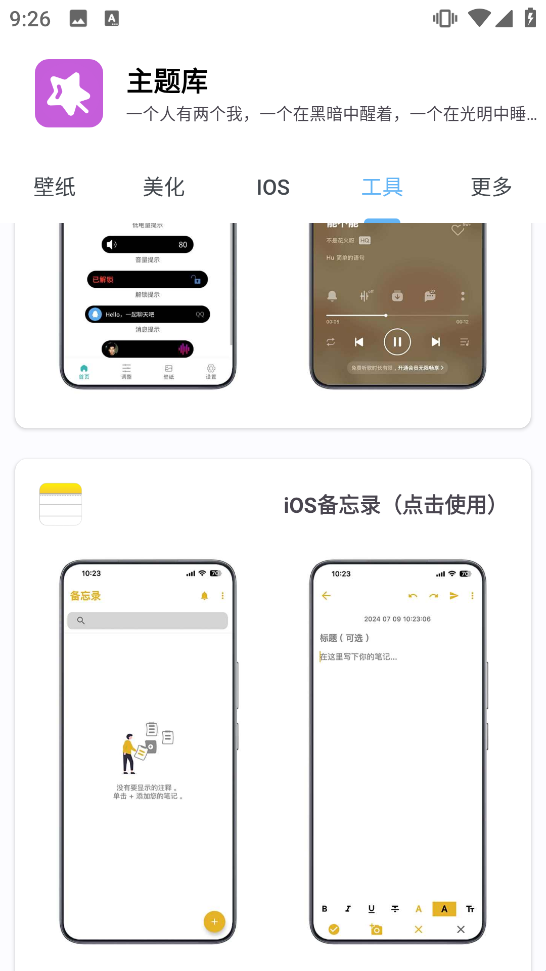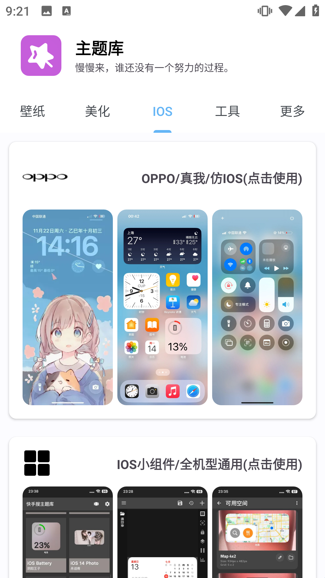 4、在ios页面为大家提供了各种仿苹果的壁纸、主题、小组件等
