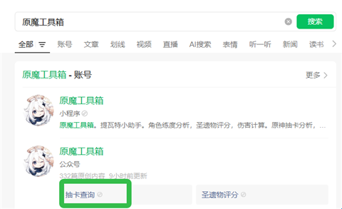 7、然后打开搜索【原魔工具箱】,点击【抽卡查询】。