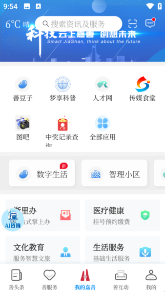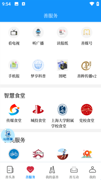 2、在善服务界面下,我们能够享受到一系列便捷服务,包括了:看电视、听广播、读报纸等等。