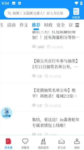 1、个性化推荐:会根据本地的新闻事件以及个人的关注内容进行个性化推荐。