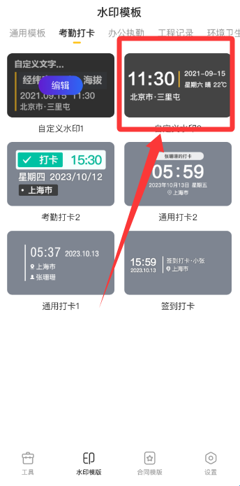 用户可以自由编辑和修改水印的时间和地址,不同的水印模板会有丰富的水印内容,并且可以自定义编辑水印内容,品牌图、时间、地点、天气、经度、纬度、海拔、编号、速度、分贝、个人名片等