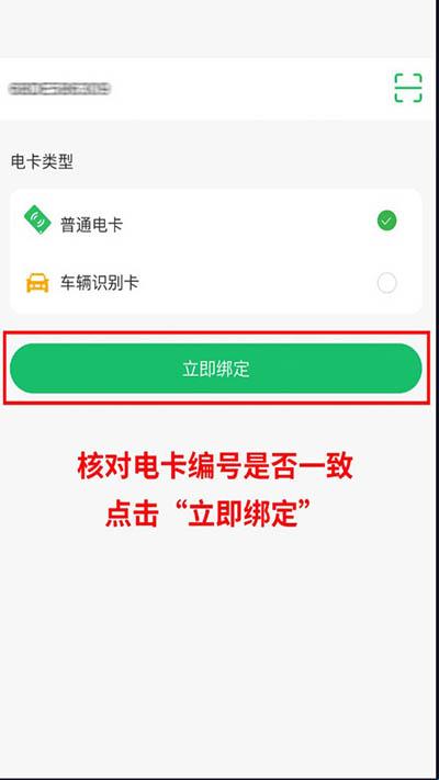 4、扫描电卡背面的二维码,核对电卡编号,确认绑定。