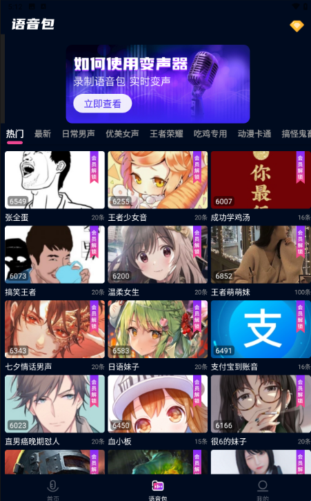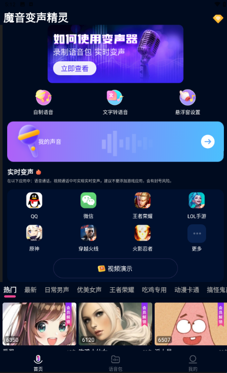 2、在首页我们可以看到使用变声器的教程,还有推荐的热门语音包。