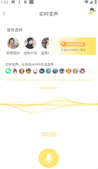 2、方便快捷的超级变声器,在QQ聊天、玩吃鸡王者荣耀中随时变声互动。你,就是场上变音大师