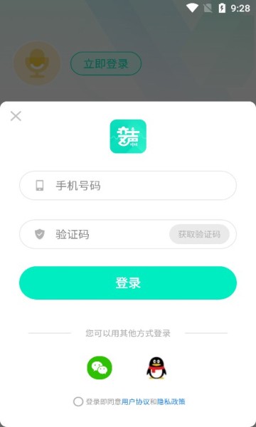8、登录账号管理个人数据:点击“我的”页面的“立即登录”,输入手机号和验证码完成登录,或使用、QQ快捷登录,同步个人作品、收藏与金币记录。