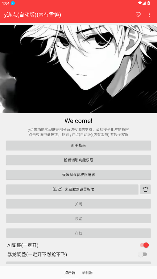 y连点(自动版)(内有弓)版是一款手机屏幕自动点击器。软件界面简洁,内置工具齐全,用户们可以根据点击需求对相关参数进行设置,支持悬浮窗服务,随时随地轻轻触碰即可启用喔!该软件是完全免费的,可以适用于大多数场景需求喔。