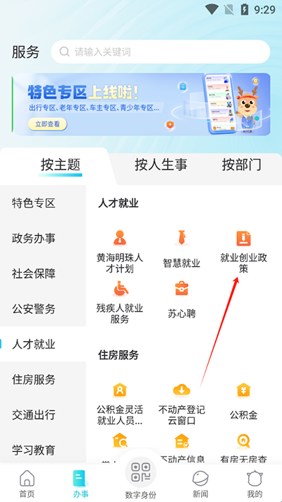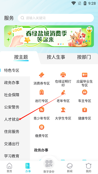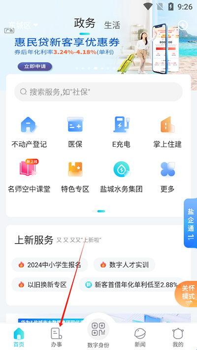 1、下载我的盐城官方版打开软件,注册登录后点击“办事”