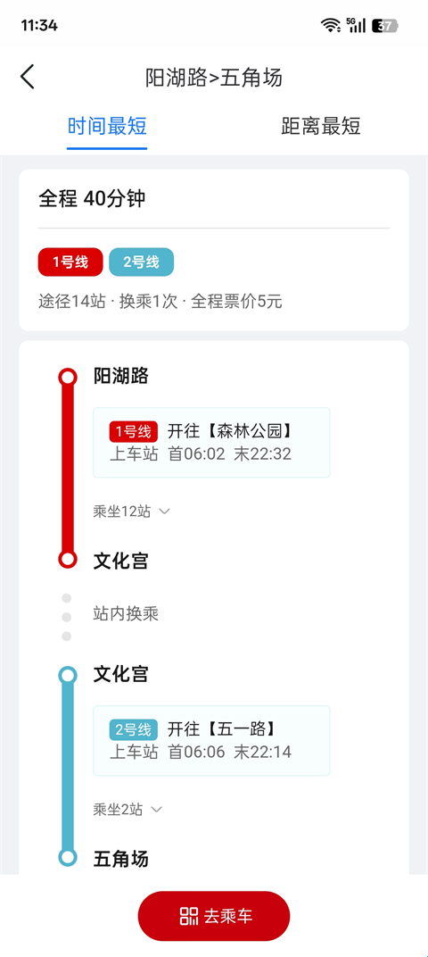 3、软件会根据用户输入的起点和终点来规划合适的出行线路